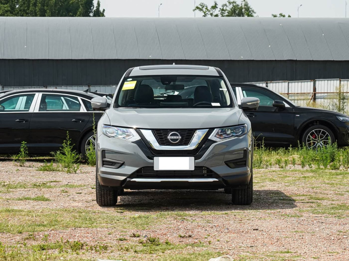 我们首先来看新车的外观设计方面,奇骏的车头设计完美诠释了V-Motion3.0设计语言的进化精髓。标志性的Double V-Motion进气格栅采用熏黑蜂窝状结构,搭配粗壮的镀铬饰条环绕日产扁平化车标,形成极具张力的视觉焦点。分体式LED大灯组是前脸的点睛之笔,上方日行灯如剑眉般锐利,下方主灯组与导流槽融合,配合黑色运动包围,既保留经典辨识度又增添年轻气息。前保险杠采用双层设计,银色护板与车身同色饰板形成强烈对比。
